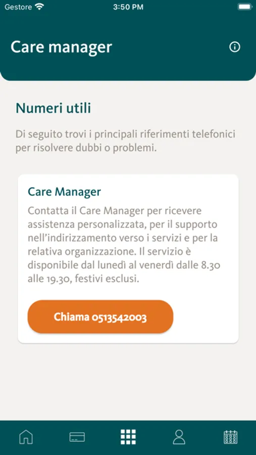• ottenere il supporto telefonico di un Care Manager, un consulente specializzato nell’assistenza in ambito sanitario, che ti indirizzerà verso il servizio più idoneo in base ai tuoi bisogni.