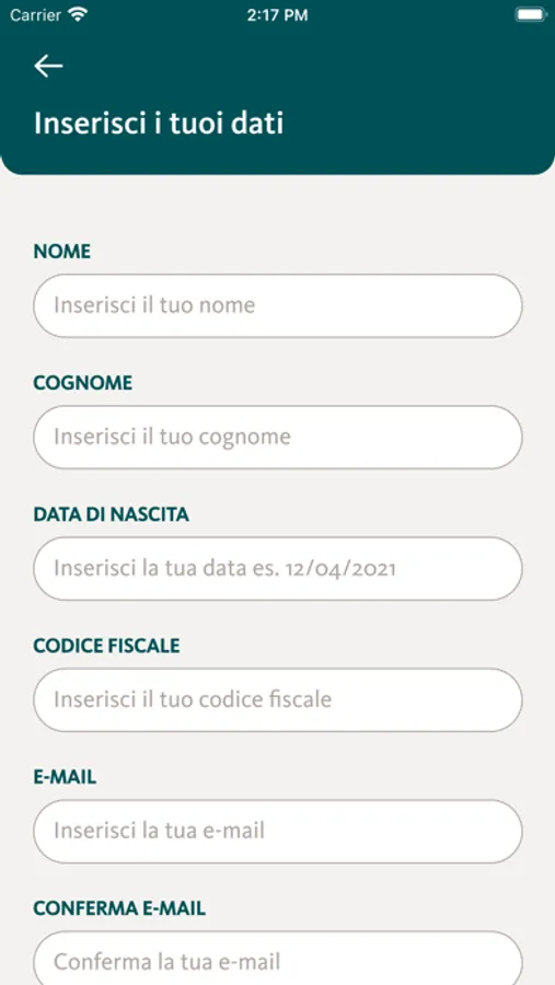 Per accedere ai servizi della app registrati inserendo i tuoi dati.