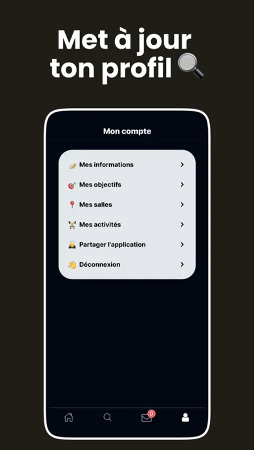 Create your profile by entering your personal details, the gyms where you train and the activities you practice.