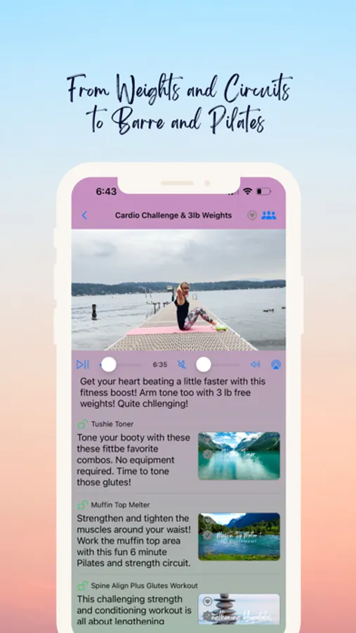 Just because they're quick, doesn't mean they're easy! In fact, these 6 minute challenges are just what you need to kickstart your metabolism and build strength. We have weekly plans to tackle, or you can sort and choose any style or target workouts you like! The sessions target, arms, abs, glutes, legs, flexibility, cardio/strength, and more.