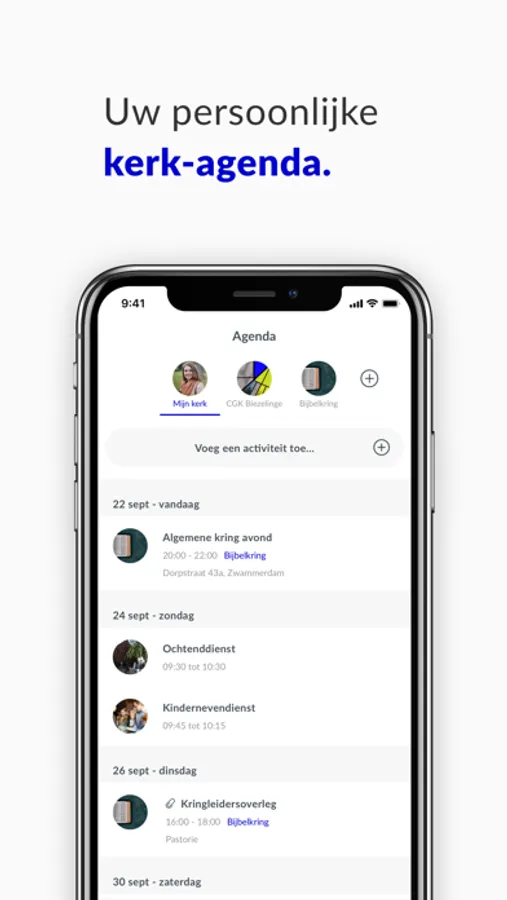 Dankzij onze unieke groepenstructuur helpen wij kerken beter te communiceren. Met de hele gemeenschap, maar ook onderling. U kunt zelf groepen toevoegen en mensen daarvoor uitnodigen. Een slimme timeline zorgt er voor dat iedere gebruiker persoonlijke en relevante informatie ziet.