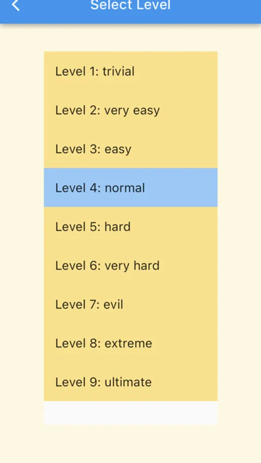In the Free version, once you clear level 4, you can play level 5, and after clearing level 5, you can proceed to level 6. By upgrading to the Pro version, you can always play up to level 9.