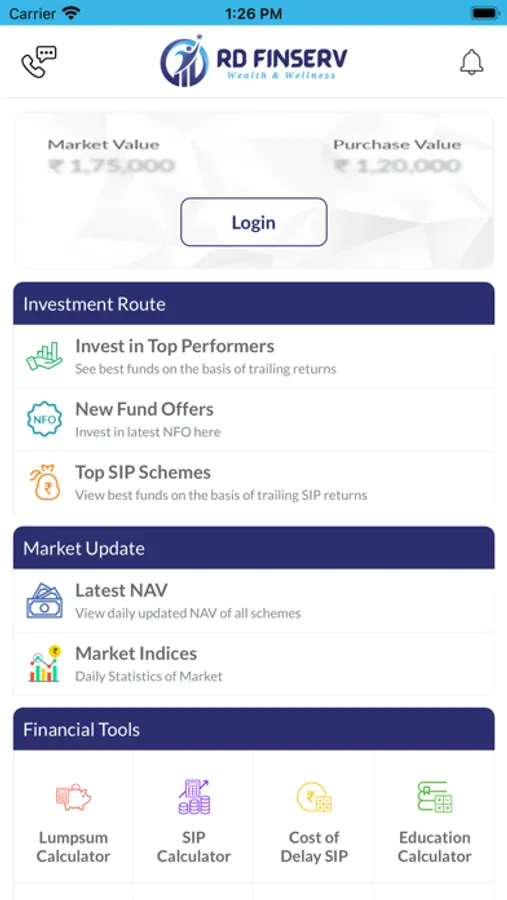 RDFinserv is one-stop shopping for all your Wealth Management needs. You can use this state of the art app to stay on top of your Complete Financial Portfolio with all assets: