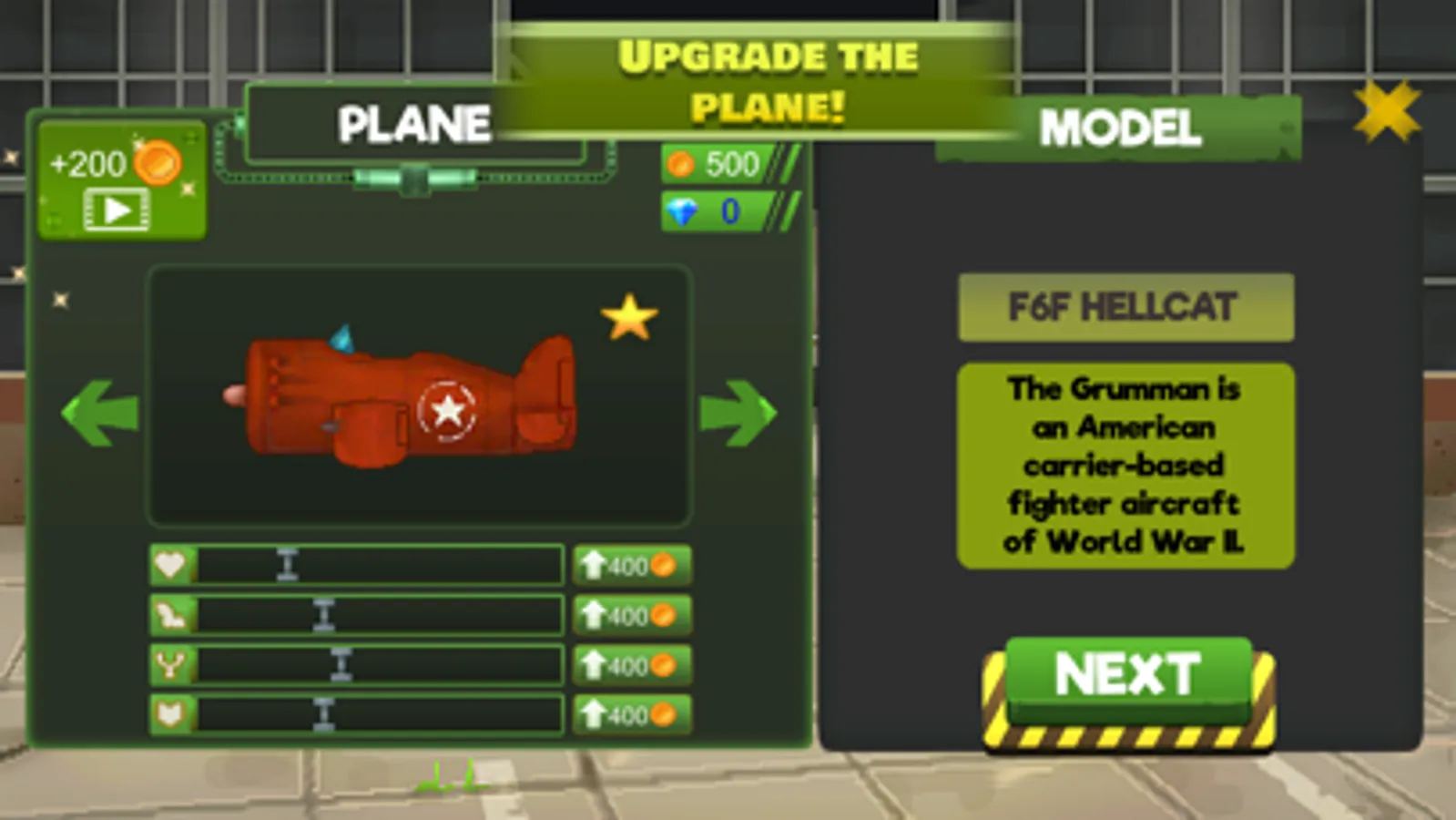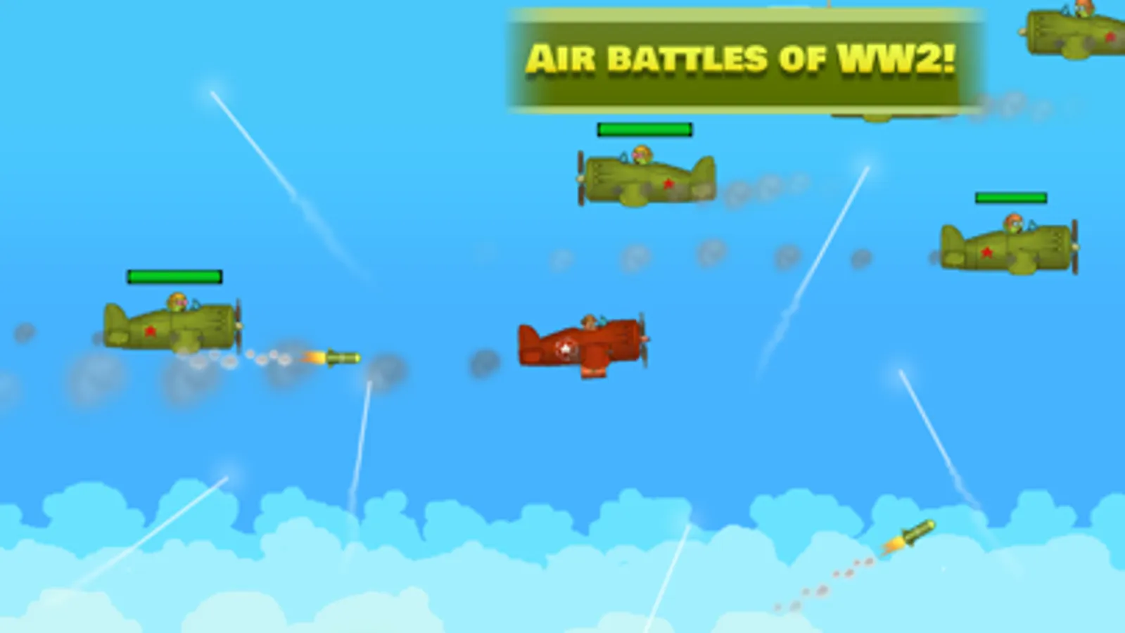 - Unique aircraft skill leveling system with simple and convenient control: buy, upgrade, equip them with bombs, rockets and a machine gun!