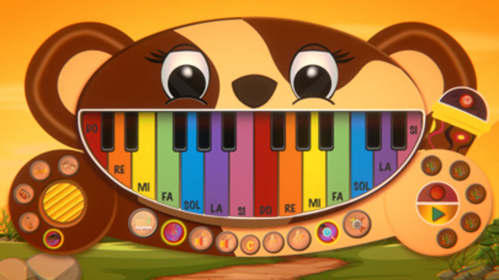 Instruments: Explore the sounds of real instruments like piano, electric guitar, xylophone, saxophone, percussion drums, flute, harp, and pan flute. Children have the opportunity to create their own melodies using different instruments and unleash their imagination.