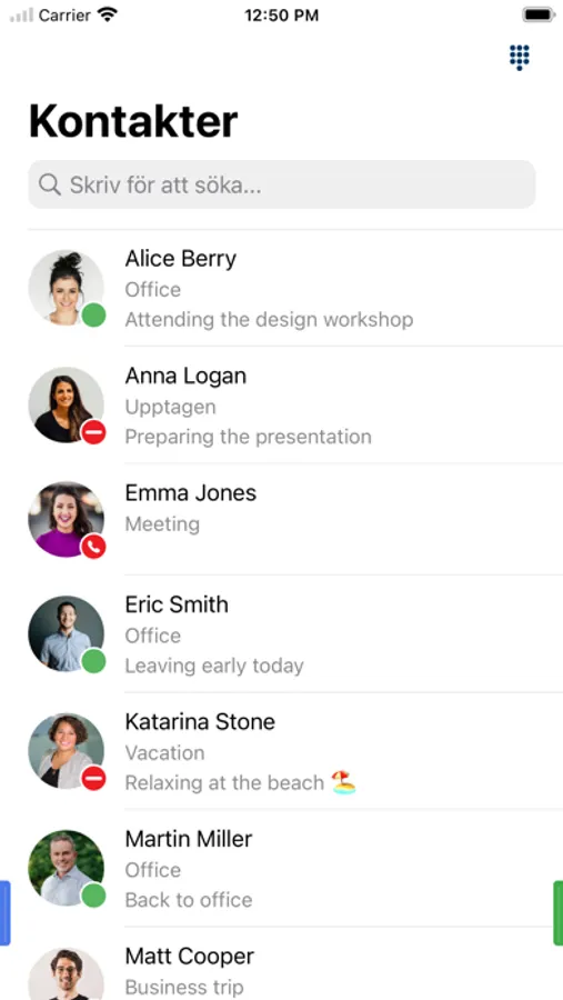 Se status på kollegor, koppla samtal, logga in och ur svarsgrupper mm.