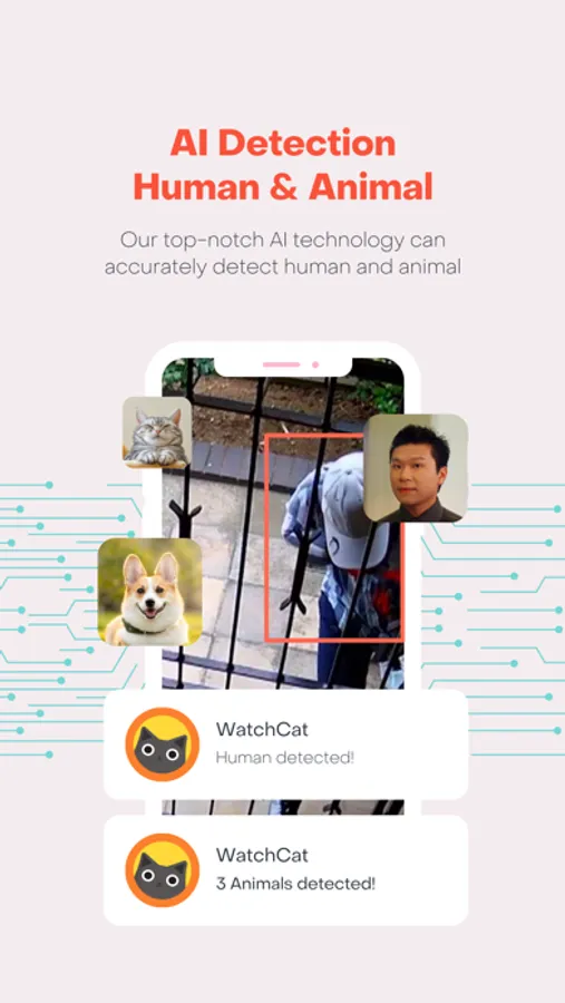 WatchCat converts your old mobile phone into a powerful AI CCTV. It not only supports live stream and playback, but also supports multiple functions such as AI human and animal detection, talkback, alert, playback, notification and event recording.