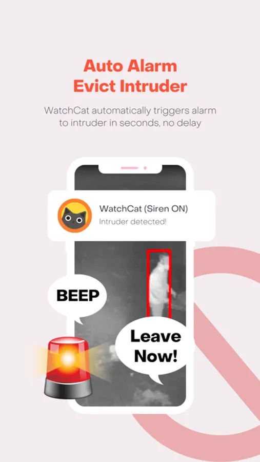 When WatchCat sees the intruder, the siren will be turned on automatically. (The siren sound can be customised)