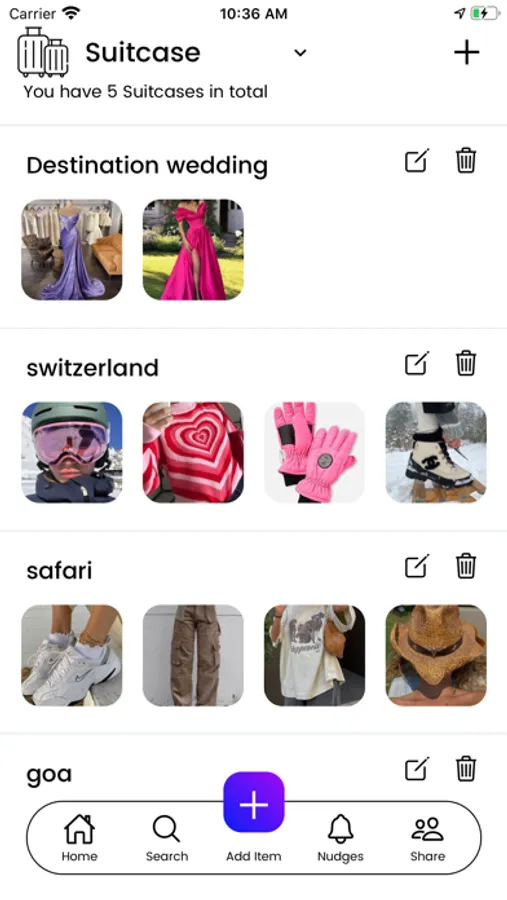 ● Suitcase - Planning for a trip? Tashann's suitcase feature enables you to pack efficiently by selecting items from your digital wardrobe and creating custom packing lists.