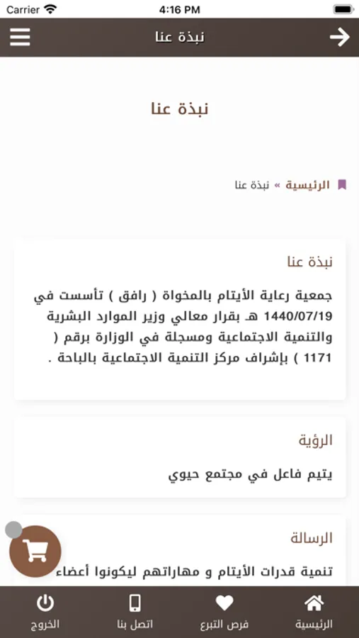 الرسالة: تنمية قدرات الأيتام و مهاراتهم ليكونوا أعضاء فاعلين في مجتمعهم و بما يحقق التنمية المستدامة