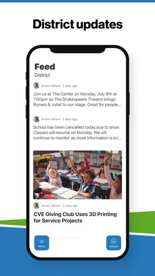 In the Live Feed is where you'll find updates from the administration about what's going on in the district right now. Whether that's celebrating a student's success, or reminding you about an upcoming deadline.