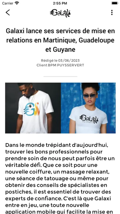 Galaxi est votre application mobile qui permet de mettre en relation directe les clients et les salons de coiffure, coiffeurs, barbers mais aussi tatoueurs, esthéticiennes, posticheurs et plein d’autres services de la beauté et du bien-être aux Antilles (Guadeloupe, Martinique), en Guyane et à la Réunion. Homme ou femme, cette application est faite pour vous ! Réservez vos prestations de beauté et bien-être directement via l’application pour plus de confort et de commodité. Si vous êtes un professionnel, vous recevrez les réservations de vos clients via cette appli !