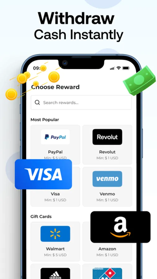 3. Get paid instantly via PayPal or choose from hundreds of different gift cards.