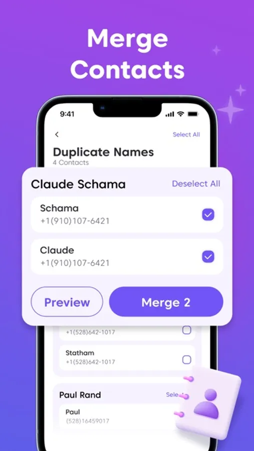 Gone are the days of duplicate contacts and disorganized address books. Ultra Cleaner provides a game•changing solution to effortlessly manage your contacts. Our app enables you to merge, back up, and swiftly remove duplicate or unnamed contacts. Seamlessly organize your contact list and enjoy a clutter•free communication experience.