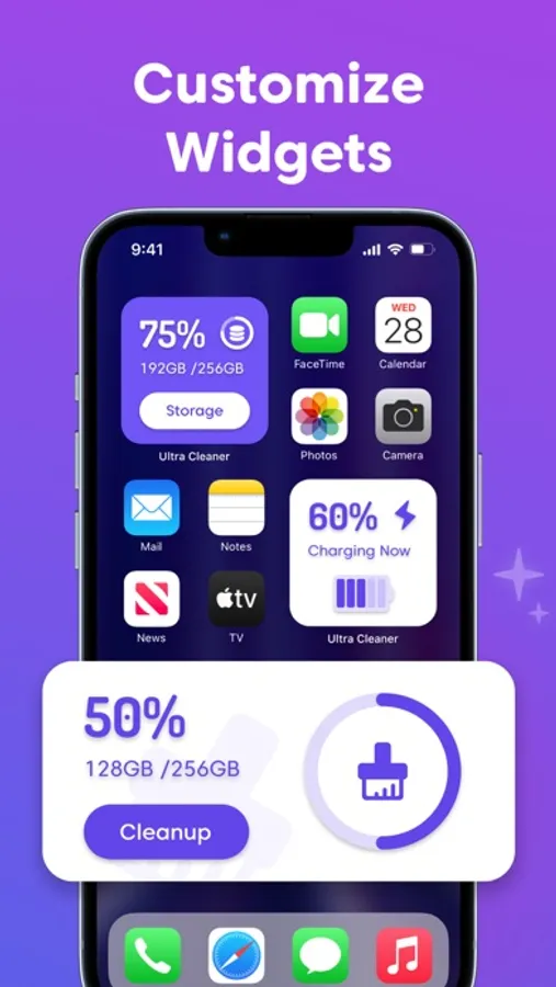 • Home Screen Widgets: Enhance your smartphone experience by adding Cleanup, Storage and Battery widgets for quick access and monitoring.