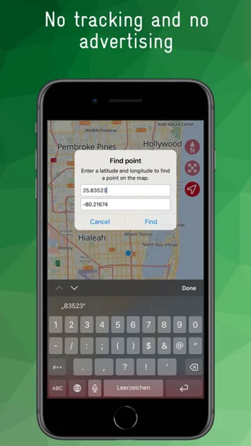 A location function shows the current position, the app is ad-free and there is no tracking.