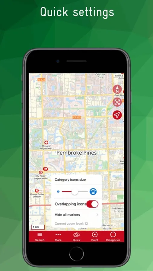 POIs are grouped into categories and can be displayed as layers. For example, you can display all restaurants, public transport lines, banks, hiking trails, charging stations and doctors on the map. The size and overlap of the icons can be adjusted to improve clarity.