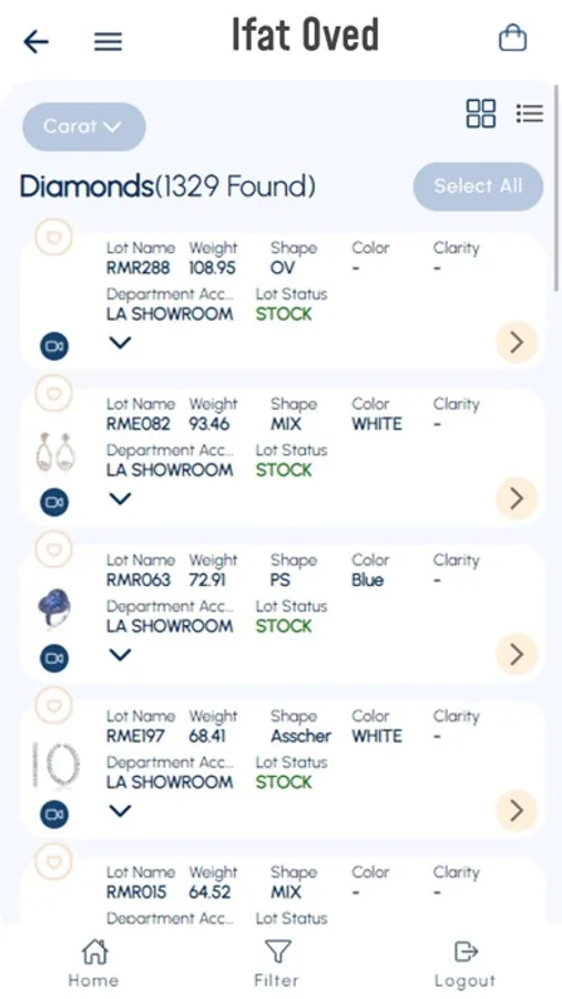 This application allow search, order , share items , sort and manage the inventory and quotations for Diamonds and jewelries stock provided by Ramgem company.