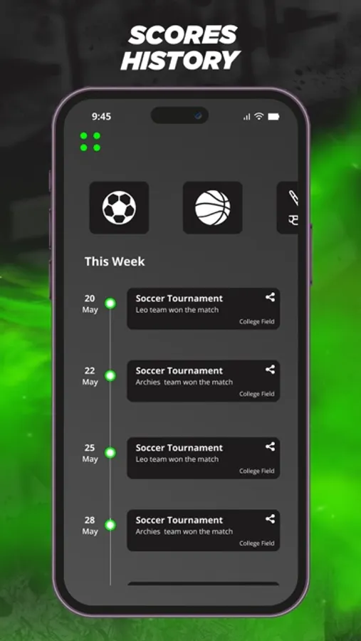 Welcome to Sport Scorecard, your personal digital scorekeeper! This app lets you easily score your matches, keeping track of every point in real-time. From amateur games to intense competitive events, 99 Sport Scorecard makes recording scores simple and intuitive. You can revisit past matches with our history view feature, perfect for analyzing performance over time. With a range of themes to choose from, customize your scorecard to match your style.