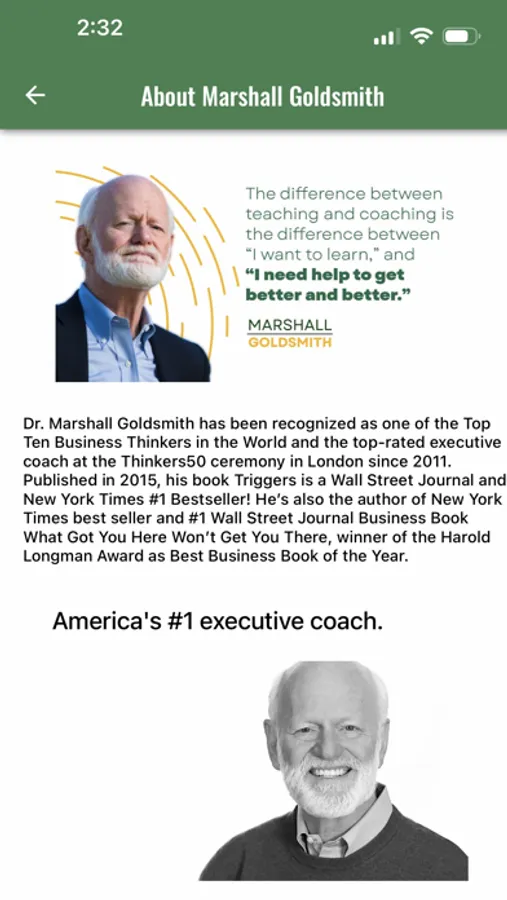 Founded by world-renowned business educator and coach Marshall Goldsmith, 100 Coaches Community brings together the world’s premier leadership thinkers and provides them with the opportunity to learn from his practiced and proven methods, plus share ideas and inspiration with one another. Our community comprises a unique spectrum of talent, including the world’s leading executive coaches, consultants, speakers, authors, iconic leaders, entrepreneurs, and nonprofit leaders.