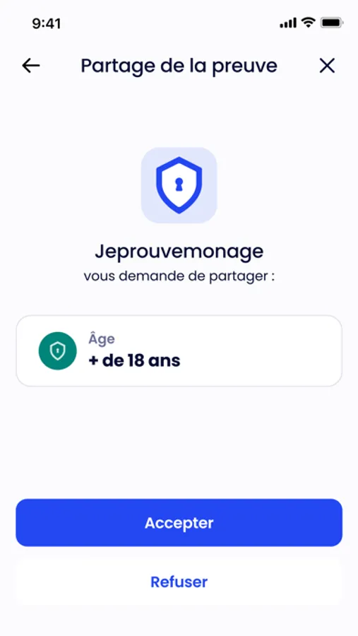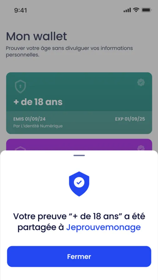 L'application « Jeprouvemonage » vous permet de prouver que vous avez l’âge minimum requis mais ne communique en aucun cas vos données personnelles aux différents sites internet requérant une preuve d’âge.
