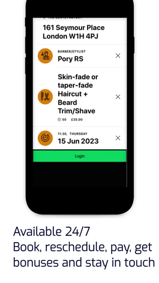 Mobile application for booking an appointment and viewing merchandise at The Gents Factory Barbershop located at 161 Seymour Place, London W1H 4PJ. Book your next appointment easily in just a few clicks, stay in touch with your barber, pay for services, and buy your favourite products, enjoy loyalty program benefits