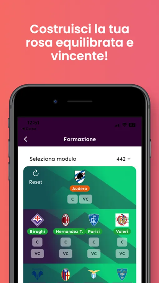 Seleziona con attenzione un giocatore da ogni squadra della Serie A e forma una rosa equilibrata e vincente!