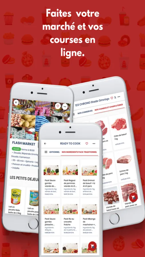 1-Large sélection de produits alimentaires : Faites votre choix parmi une variété de viandes, poissons et autres produits locaux directement depuis votre smartphone.