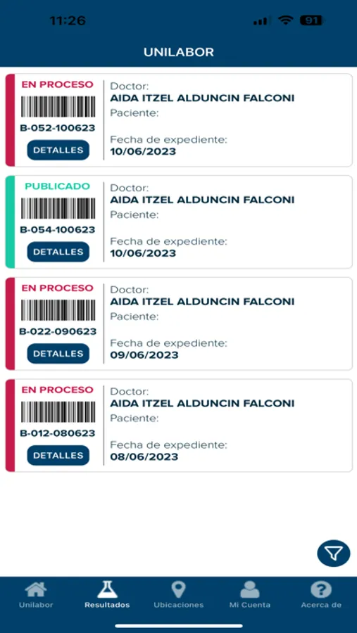1. Como paciente podrás consultar los resultados de sus estudios más reciente y hacer la búsqueda de los expedientes.