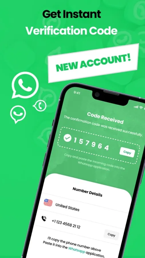 Using WaGo is easy. Simply download the app, choose any of the countries conveniently and get your virtual number. Then, open WhatsApp and enter your virtual number. Open the WaGo app again and copy the incoming SMS code for verification. After copying, open WhatsApp and paste the verification code. That's it! You can now use your virtual number in WhatsApp.