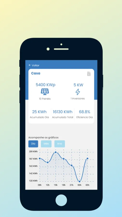 - Análise de Dados Avançada: Explore análises detalhadas por meio de gráficos e gráficos intuitivos. Analise tendências diárias, semanais e mensais de produção de energia para otimizar o uso da sua usina solar.
