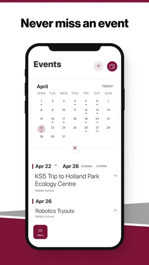 Select your student's organization within the app and make sure you never miss a message.