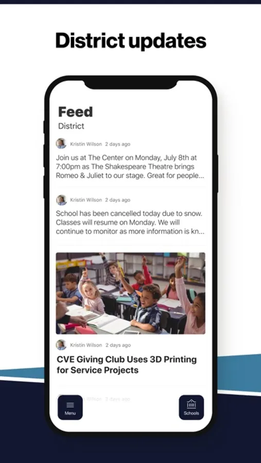 In the Live Feed is where you’ll find updates from the administration about what’s going on in the district right now. Whether that’s celebrating a student’s success, or reminding you about an upcoming deadline.