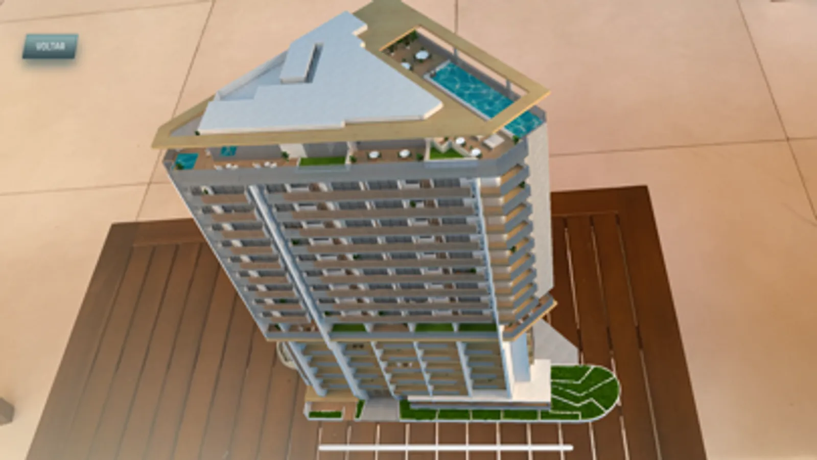 Você verá também a galeria de fotos, perspectivas, plantas, interação com Realidade Aumentada e todas as informações do empreendimento.