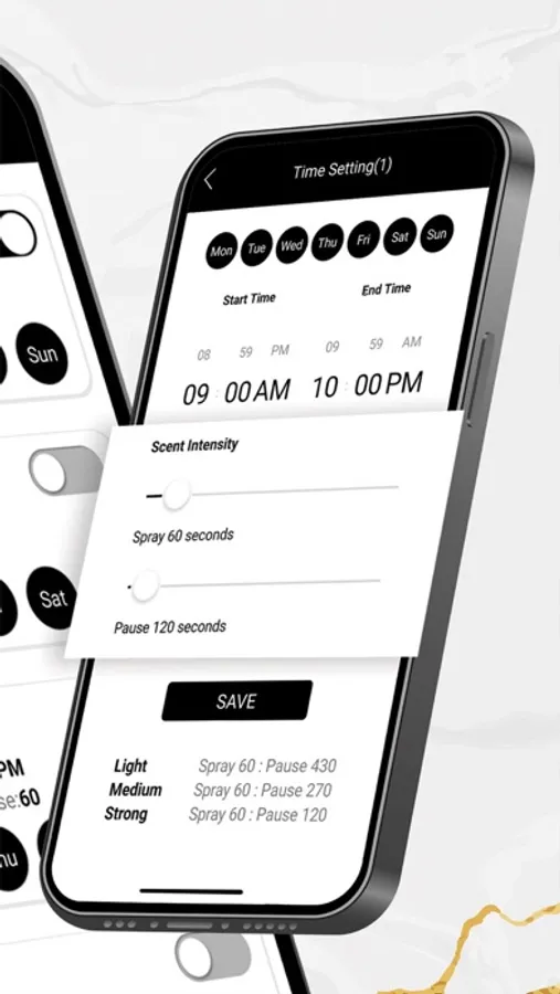 Schedule scenting sessions to automatically trigger at specific times, ensuring that your space is always filled with the perfect aroma when you need it most.