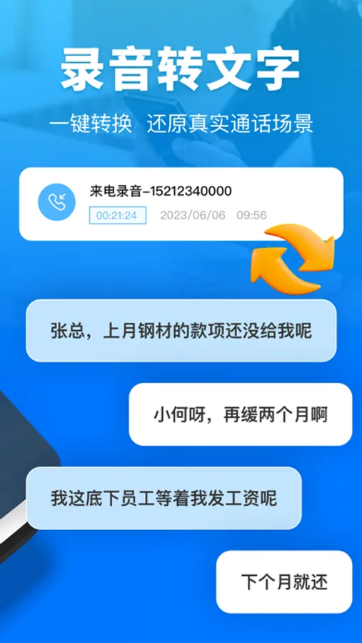 电话录音机一款专业的通话录音软件,随时随地录制通话内容,高清存储录音文件,是您取证维权的好帮手。