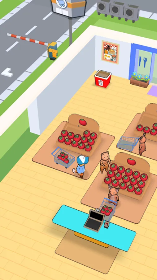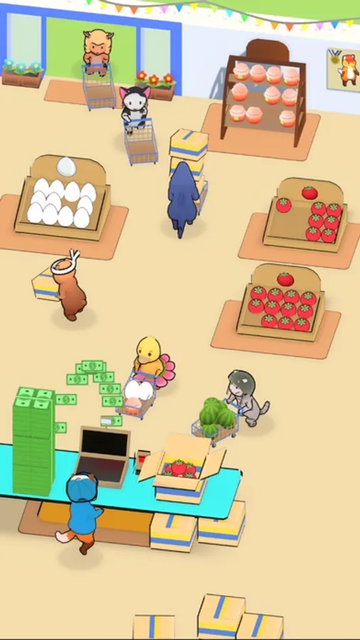 The goal of My Animal Mart is to move as fast as possible to collect food and stack the shelves, hiring cashier, farmer, chef… to sell as many products as possible, attracting more and more customers.