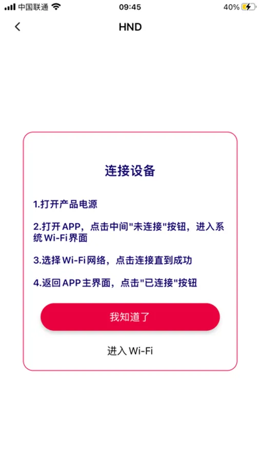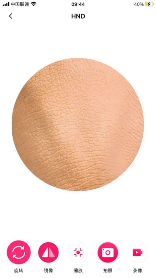 HND App通过HND品牌美容仪器的WiFi,与仪器建立通信,实时获取仪器拍摄的画面,并可以录制图片和视频用于保存和分享。