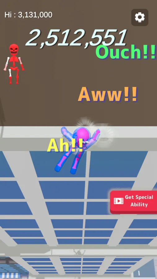 Watch out for obstacles during the fall that cause spectacular bone-breaking animations.
