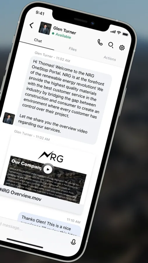 Our team provides the best of the best for our customers in all aspects of the project. Use the NRG Xperts App to connect with our team throughout the entire process. Our app provides private workspaces for doing business with our team and managing your project throughout each step. With features such as secure messaging, video conferencing, document sharing, digital signature, and more — the NRG Xperts app provides a seamless experience at your fingertips.