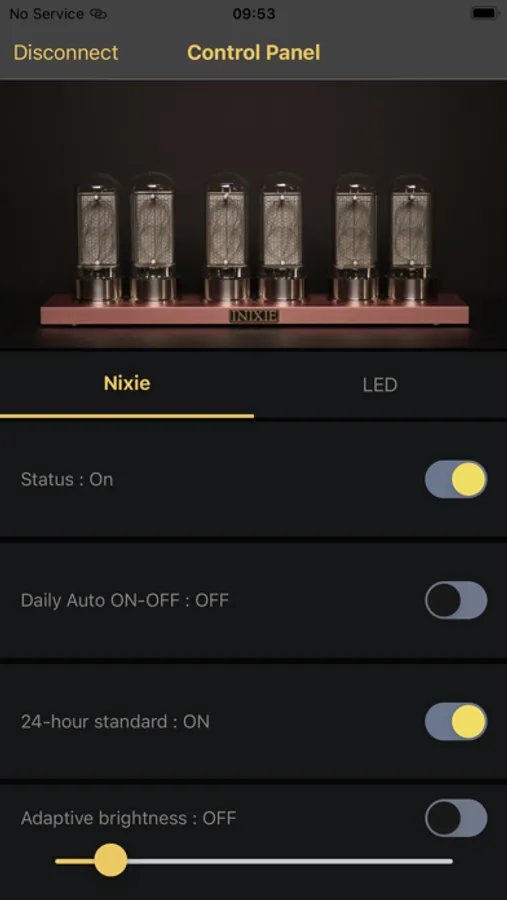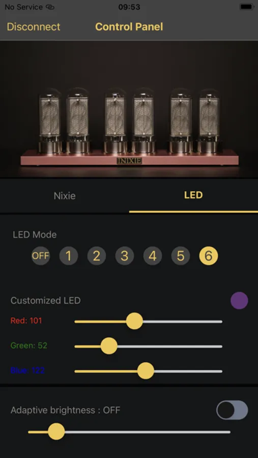 Connect & control your Nixie clock via Bluetooth. Customize LED styles, switch display modes, and tailor settings with ease. Elevate your Nixie experience effortlessly.