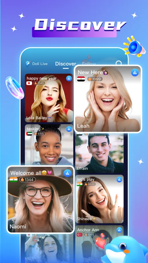 Doli is the best way to watch entertainment live and see your favorite broadcasters live! Meet new friends all over the world, receive and send virtual gifts. Here you can meet another interesting soul, anonymous chatting and making friends.