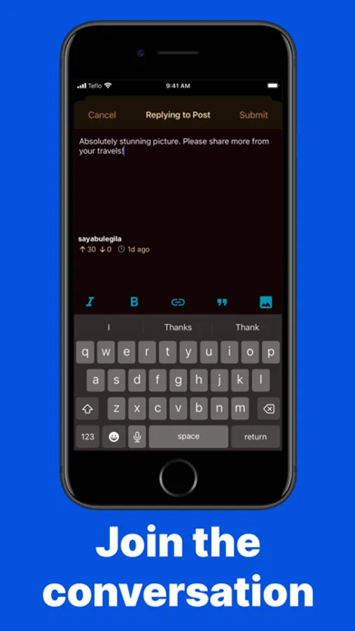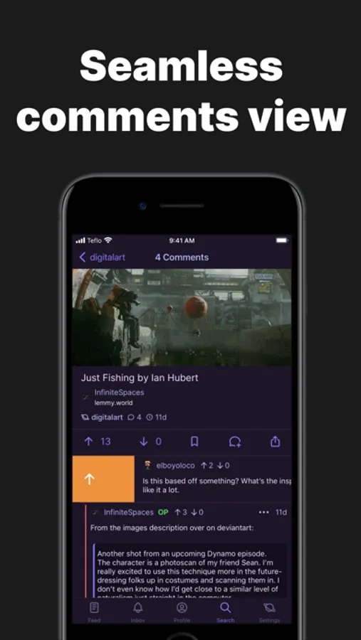An easy to use comments view, allowing you to easily keep in touch with the community.