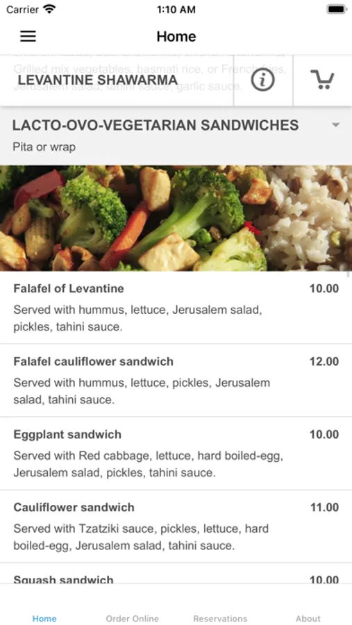 In addition to our Mediterranean focus, we also offer an extensive gluten-free, vegetarian, selection including appetizers, sandwiches, entrees, and desserts.