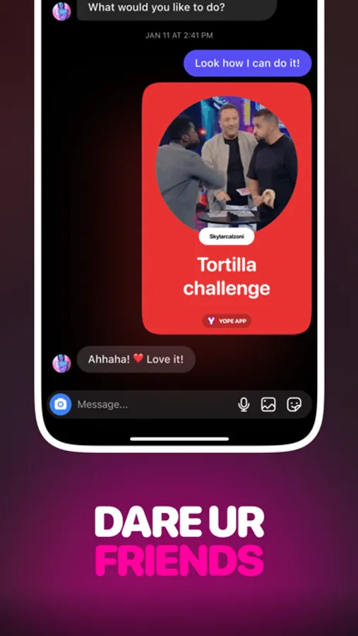 Record your dare performances and capture the genuine reactions of your friends on Yope.