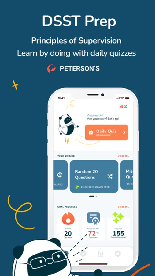 Peterson's Principles of Supervision DSST Quiz app lets you study on the go for test day. Test yourself with customized quizzes, complete with detailed answer explanations, until you feel fully prepared to pass your exam.