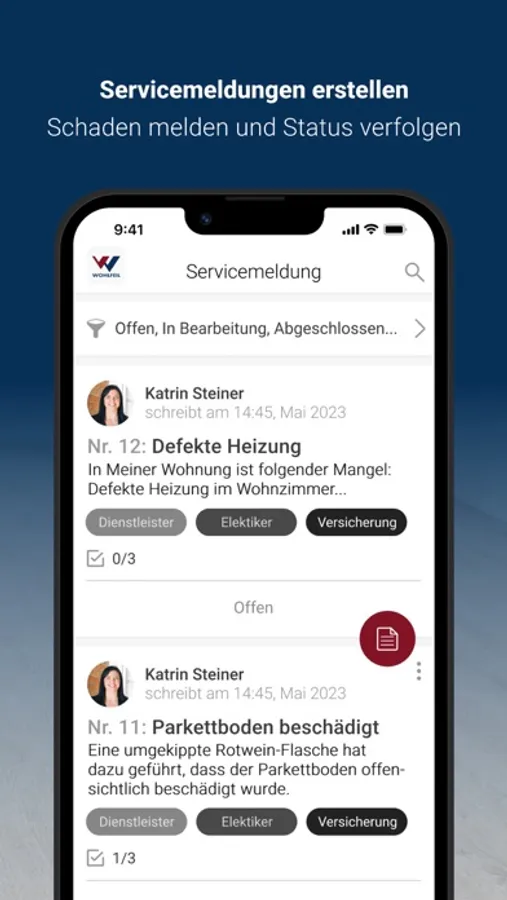 - Interaktiv: Effizienz gehört zu unserem Tagesgeschäft. Ihre Schadensmeldungen und sonstige Anliegen werden rasch bearbeitet und Sie erhalten regelmäßig per Push-Nachricht ein Status-Update.
