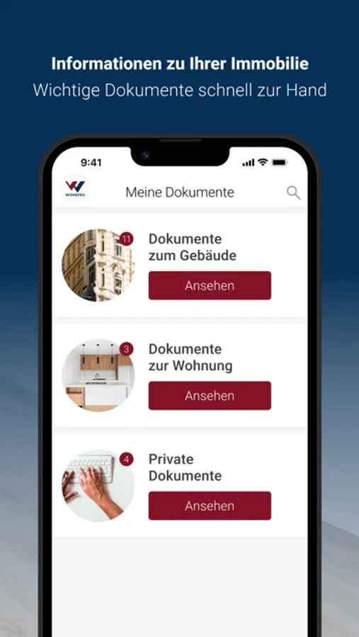 - Transparent: Dokumentation ist für uns die “halbe Miete”. In der WOHLFEIL App gehen keine Informationen verloren und Sie finden alles Wichtige zu Ihrer Immobilie in der App gebündelt.