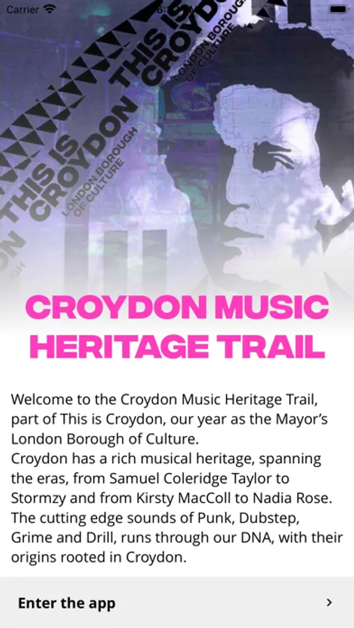 This project was developed with the people of Croydon in mind. Over 11,000 people engaged to nominate and vote for musicians, performing artists, venues and other music heritage assets. The top 25 are featured in this app and are just a taste of the great music stories to come out of Croydon.