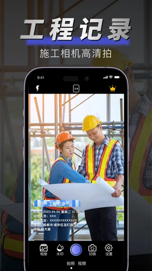 工作质量记录、考勤打卡、物业工作记录、建筑工程管理、外勤拍照、品牌宣传、现场取证、会议记录、执勤巡逻、旅行打卡等